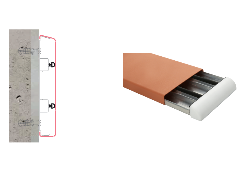 Aluminijski Rukohvat TG-52 Sistem je dekorativna zidna zaštitni odbojnik širine 140 mm i dubine 75 mm, kontinuirano zakrivljena zidna zaštitna traka koja se postavlja na…