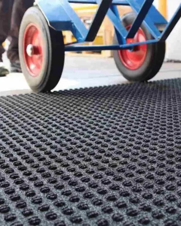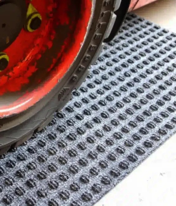 Specijalna struktura nitrilnih čvorova u dva nivoa efikasno uklanja nečistoću i vlagu sa točkova viljuškara i paletara, čineći ih čistim i bezbednim za dalji transport. Ova tehnologija omogućava stabilno kretanje vozila čak i u zahtevnim industrijskim uslovima, gde je prisutan veliki promet i visoko opterećenje.
